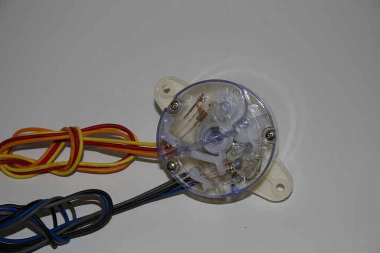 Description: Wind up timer has 6 wires and 4 contacts Contact one only closes during the last 20 seconds then opens at the very end. Contact 2 closes when the timer is running and is open at the end. Contacts 3 and 4 switch between 3 closed 25 seconds, all open 5 seconds, 4 closed 25 seconds, all open 5 seconds and repeats.