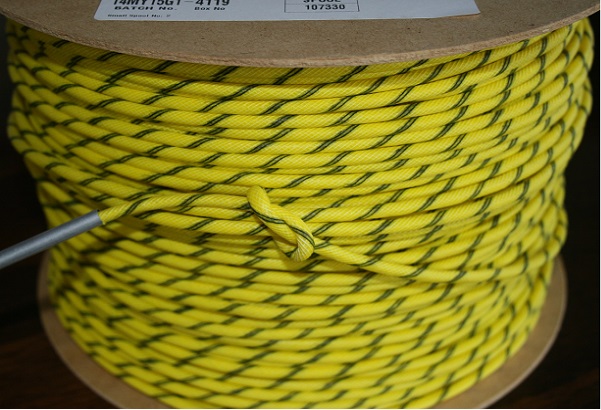 Inert det cord (10, 50 grain,.19 od) yellow and black normal military style for use with 1/4 inch cap $1.00 US per foot *